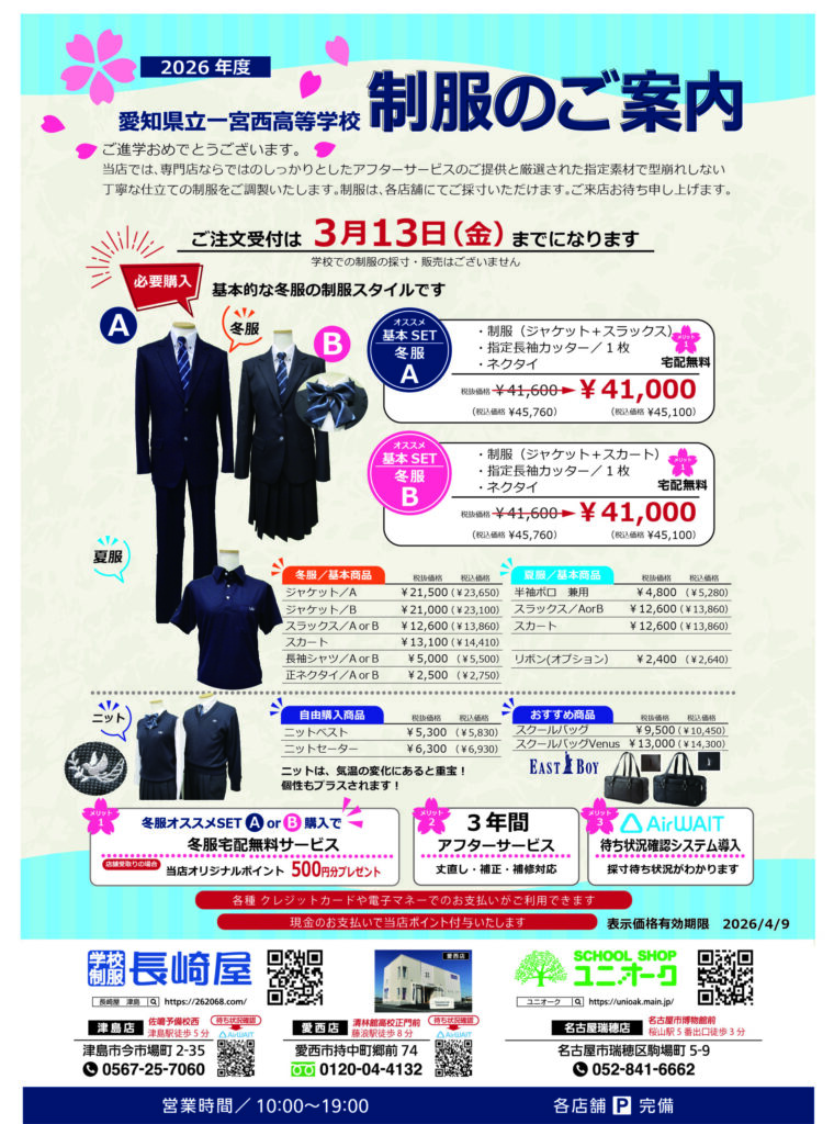 ðãç¥ãäŸ¡æ Œðž2026幎æ°å ¥åŠã»ãŒã«ðžã¯2æ9æ¥ããéå¬ããããŸãã
