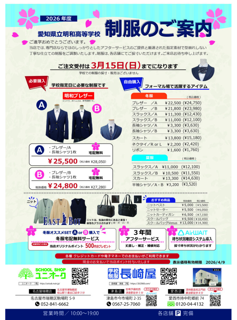 ðãç¥ãäŸ¡æ Œðž2026幎æ°å ¥åŠã»ãŒã«ðžã¯2æ9æ¥ããéå¬ããããŸãã
