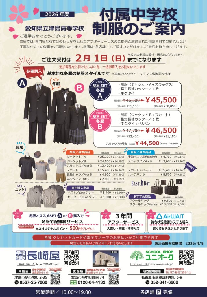 🎊合格おめでとうございます。🌸 津島高校OB・OGが経営しています。新入学特別価格でご用意!ご来店お待ちしています。🌸